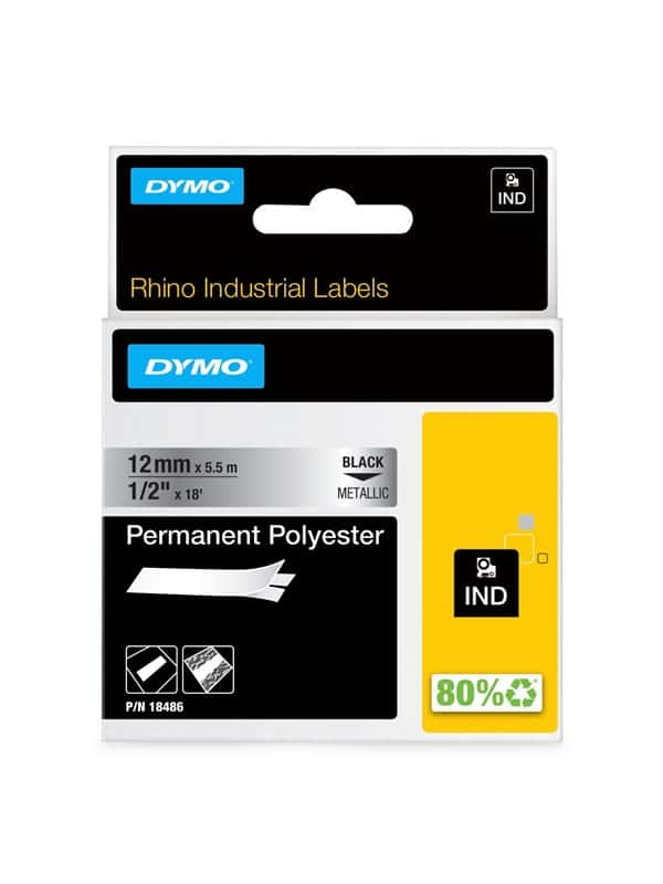 DYMO Dymo Rhino permanent polyester | 12mm x 5.5m | sort på metallic