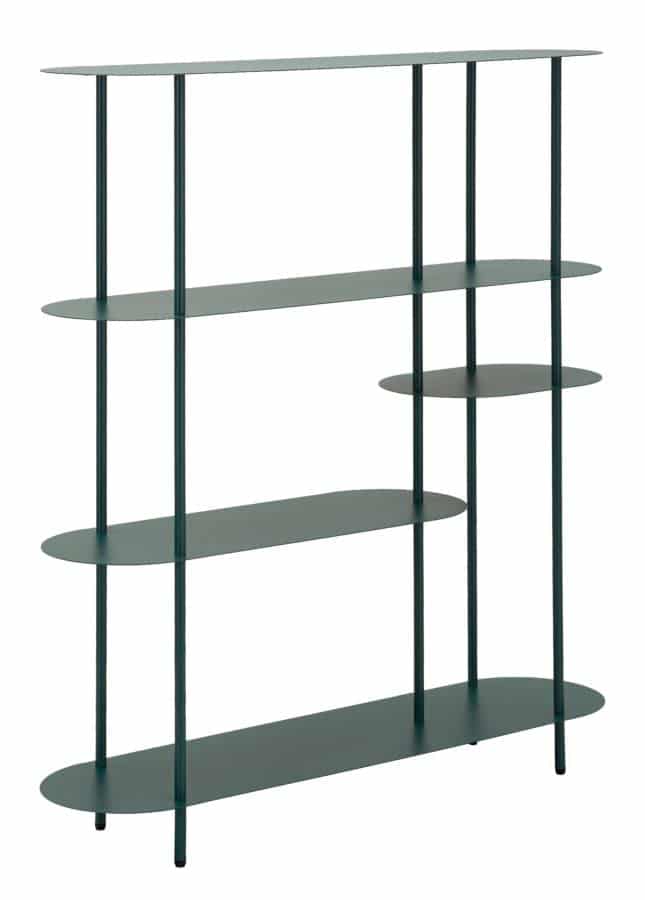 Saturn Bogreol Dove Teal forener praktisk funktion med et elegant og moderne design. Det fungerer smukt i stuen, entréen eller kontoret, hvor det giver plads til både opbevaring og styling. Produktdetaljer: Materiale: Metal Farve: Tail Mål: 118 x 31 x 139